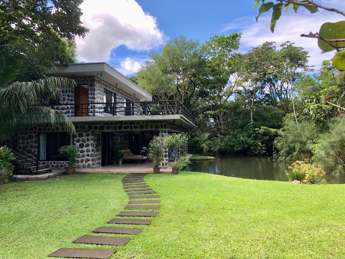 Private house with 1 bedroom, queen bed, single bed, and sofa bed. Full bathroom with hot water, equipped kitchen, large windows, A/C, strong Wi-Fi, private entrance and parking. Located in a private natural sanctuary with frogs, toucans, and wildlife. Relax on the lagoon dock or walk the stream trails. 🌙 Optional night walk. English-speaking guide $20 per person. Perfect stop between San José and La Fortuna (Route 702).