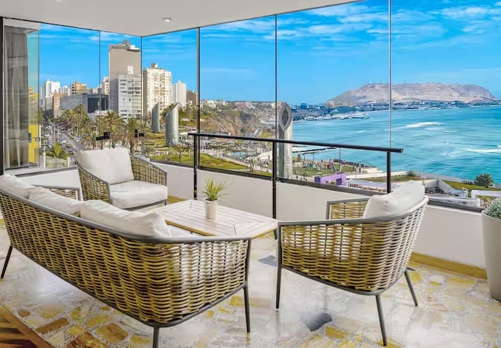 Luksuriøst Airbnb med fantastisk havutsikt, som blander moderne eleganse og ultimat komfort. Et kvartal unna den NYE «Puente de la Paz». Slapp av på et elegant, koselig sted med toppmoderne klimaanlegg, lynraskt fiberoptisk trådløst nettverk for fjernarbeid og førsteklasses apparater. TOTO-toalett. Gangeavstand fra Maido, den beste restauranten i verden (2025) og Central (2023), pluss spisesteder i toppklassen, håndverkskaffebarer, museer og Larcomar-kjøpesenteret.