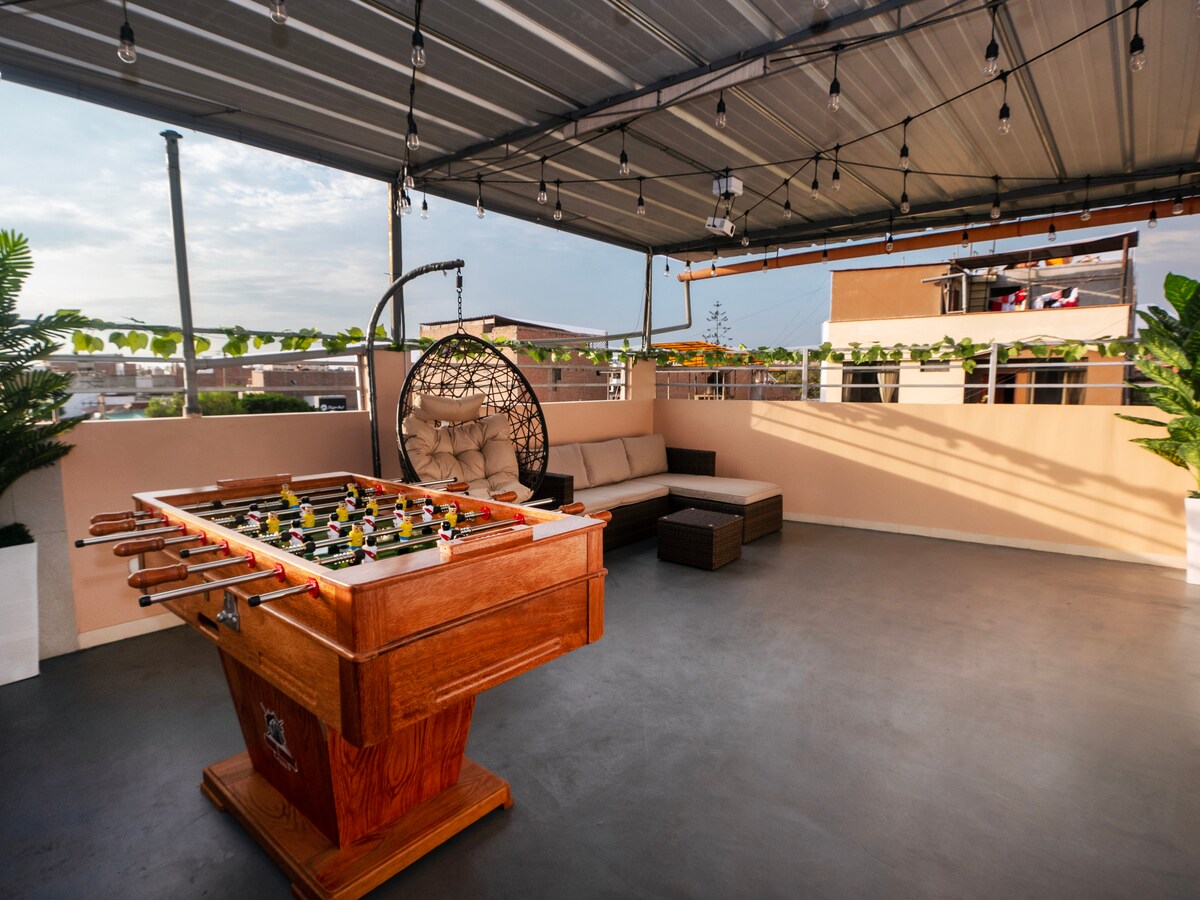 Moderne og koselig leilighet i hjertet av Lima, ideell for et komfortabelt, stille og funksjonelt opphold. Den har en queensize-seng, TV på soverommet og stuen med Netflix, MAX og Win TV, trådløst nettverk med høy hastighet, fullt utstyrt kjøkken og vaskerom med vaskemaskin og tørkestativ. Sikkerhet døgnet rundt, upåklagelig rengjøring og en strategisk beliggenhet bare ti minutter fra Magic Water Circuit og Edgardo Rebagliati Hospital. Perfekt for hvile, arbeid eller sightseeingturer, i trygge omgivelser.