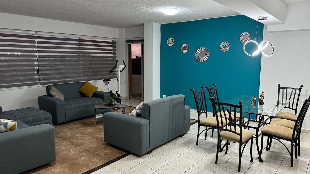 Det ideelle stedet ditt i et av de mest sentrale og tryggeste områdene i Santo Domingo. Bare minutter fra Paseo Shopping, Supercines, Supermaxi, La Quadra, Parque Jelén Tenka, La Manaba #2 restaurant, Club Panamericano gym, alle banker, minimarkeder, apoteker og mer. Perfekt for familieferier, forretningsreiser eller komfortable opphold uten å kaste bort tid på pendling. Romslig og fullt utstyrt leilighet, designet for å slappe av som på et hotell, men med privatlivet til et hjem.