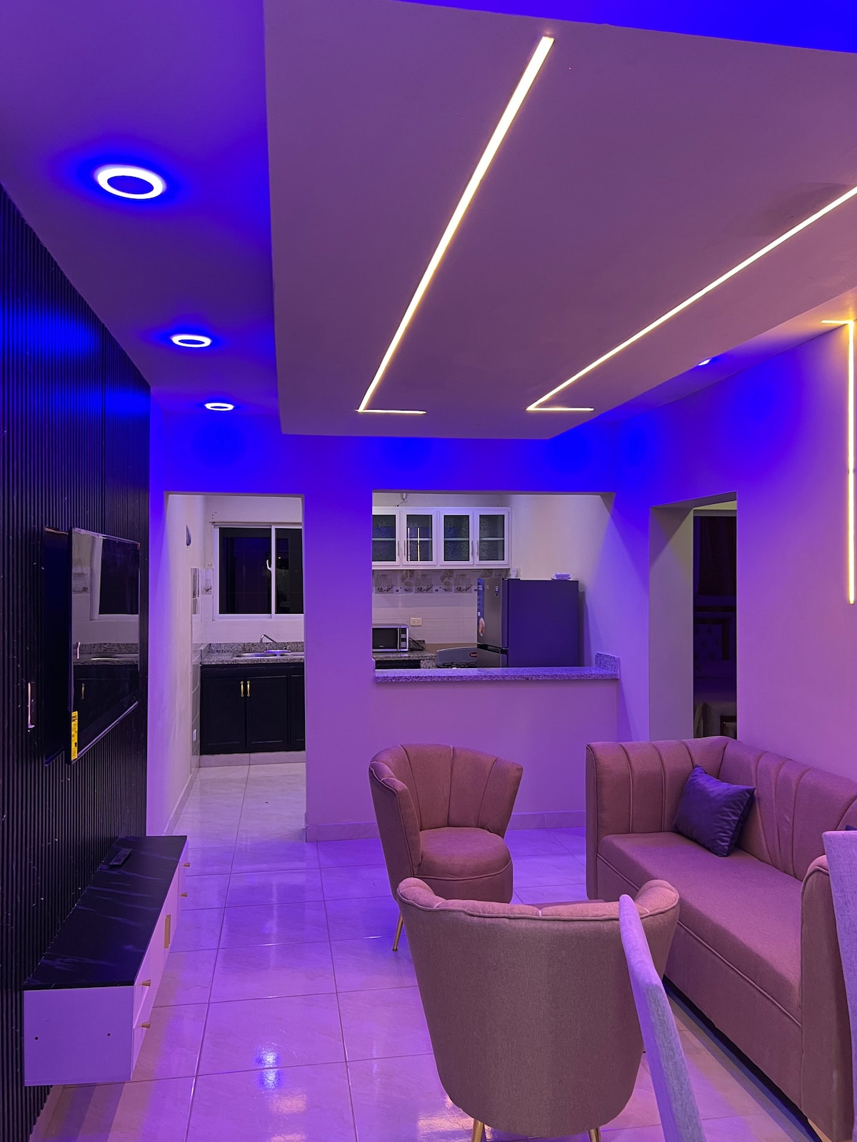 Have fun with the whole family at this stylish place. with the privacy and utilities necessary to have unforgettable moments, It has a full kitchen, full bathroom in the main two room, the other room have a service restroom. we have air conditioner in Mains room whenever there is electricity, There are fans in the wall and ceiling fan in the living room. Enter with an access code # It is a 4th floor there are no elevators! But we offer help with luggage as long as you give me advance notice.