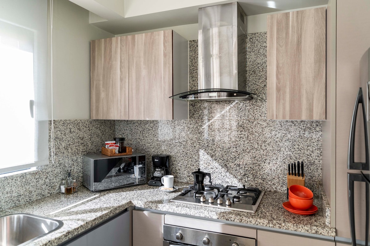 • Beliggende i hjertet av Santo Domingo. • romslig 810 kvadratfot med ett soverom, én seng + én sovesofa • Perfekt for par og hjemmekontor. • takterrasse med basseng, boblebad, treningsrom og massasjeområde • Taket er et delt sted. • Døgnåpen lobby. • Kjøkken med alle grunnleggende apparater. • Balkong med fin utsikt. • 58 tommers smart-TV. • Gratis trådløst nettverk, Netflix og privat parkering. • få minutters gange til flotte steder å slappe av, spise og handle