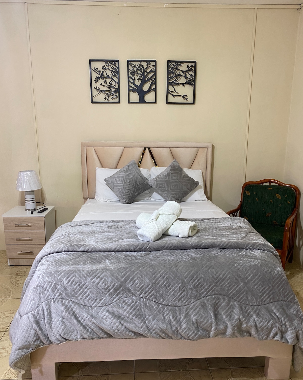 Ha det gøy med hele familien i denne overnattingen med elegant og moderne stil med hjemmeautomatisering i hele huset, sentral beliggenhet, fem minutters gange til KFC, Gran Aki, Tuti, apotek, supermarkeder osv. 🛏️ ett soverom med en seng med 2,5 plasser 🚿 Privat bad. 🍳 Kjøkkenet er utstyrt med basisartikler for å tilberede maten din. 📶 Trådløst nettverk med høy hastighet. ❄️ Aircon 📺TV med tilgang til Netflix. 🧊Kjøleskap. 🚗 Parkering. Og mye mer