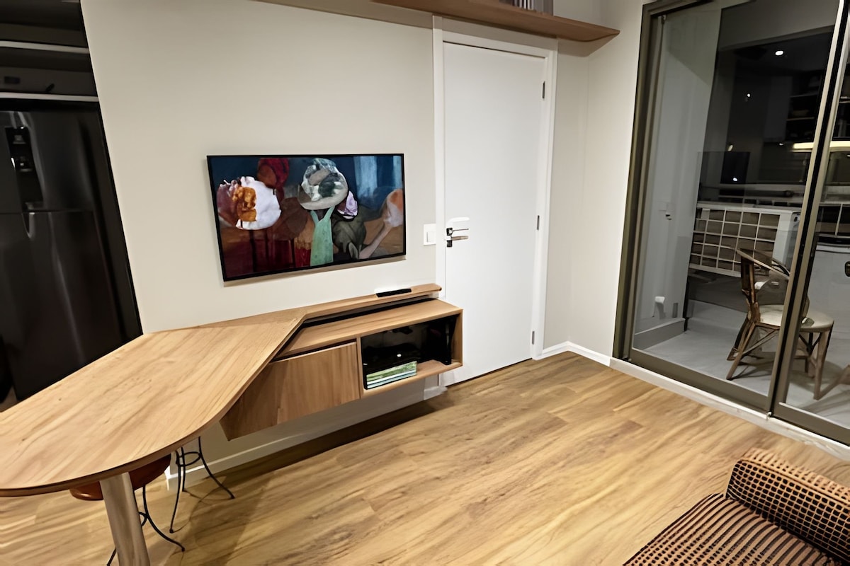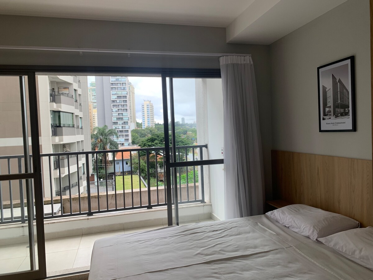 Studioleilighet med utsikt (26 kvm – 9. etasje). Apto ligger ved siden av Metro Brooklin Station, og 12 minutter med bil til Congonhas lufthavn. >> Nær steder: . Hípica Paulista . Clínica Einstein . amerikansk konsulat >> Kjøpesentre i nærheten: Morumbi Mall . Shopping D&D . Shopping Ibirapuera . Shopping JK Iguatemi >> Du får i leiligheten: Resepsjon døgnet rundt. . Treningsrom; . OMO vaskeri; . Coworking . Minimarked