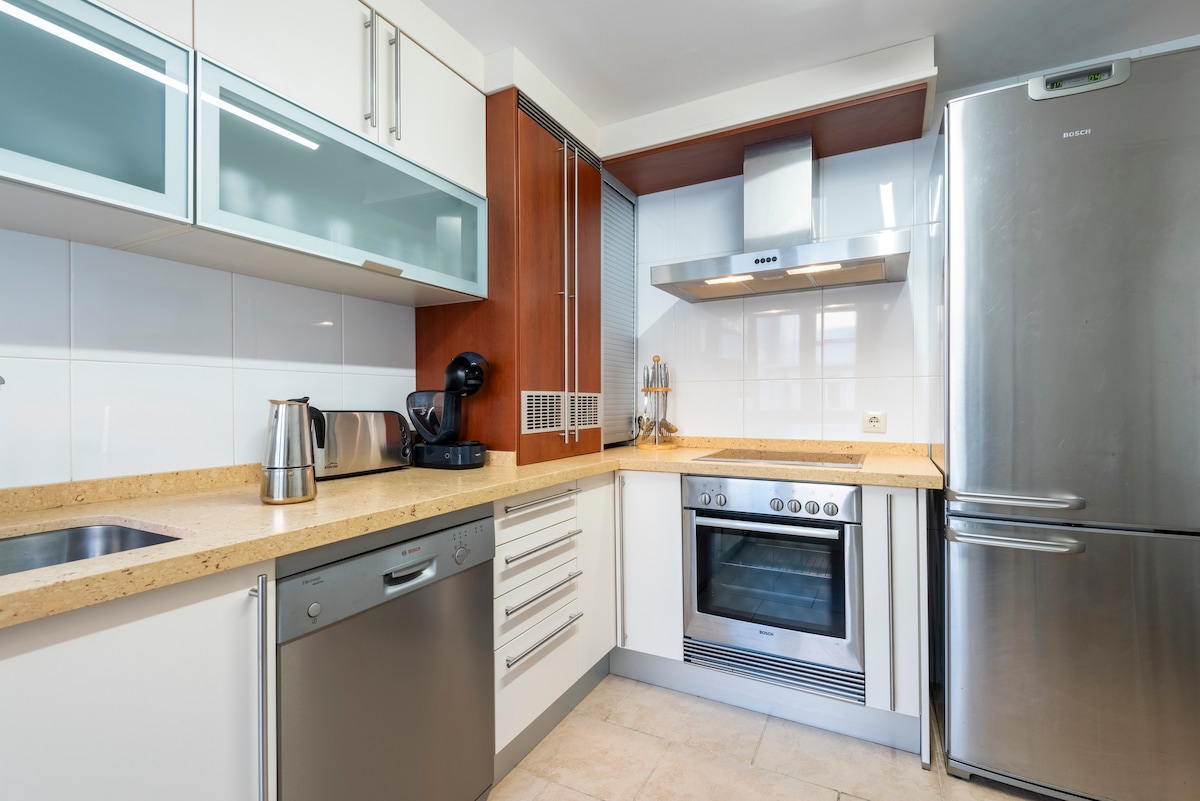 En luksuriøs opplevelse i denne sentrale og lyse leiligheten utstyrt som en hotellsuite. Historisk bygning. Soverommet, ledet av en komfortabel kingsize-seng, smart-TV, balkong og en komplett bad. Stuen har et flørtende amerikansk kjøkken, en spisestue, en smart-TV i storformat, et komfortabelt arbeidsbord ved siden av vinduet og en sovesofa. To vinduer tre meter høye med balkonger som ser ut på "Puerta del Sol de Vigo". I nærheten av havnen - Islands-Cis