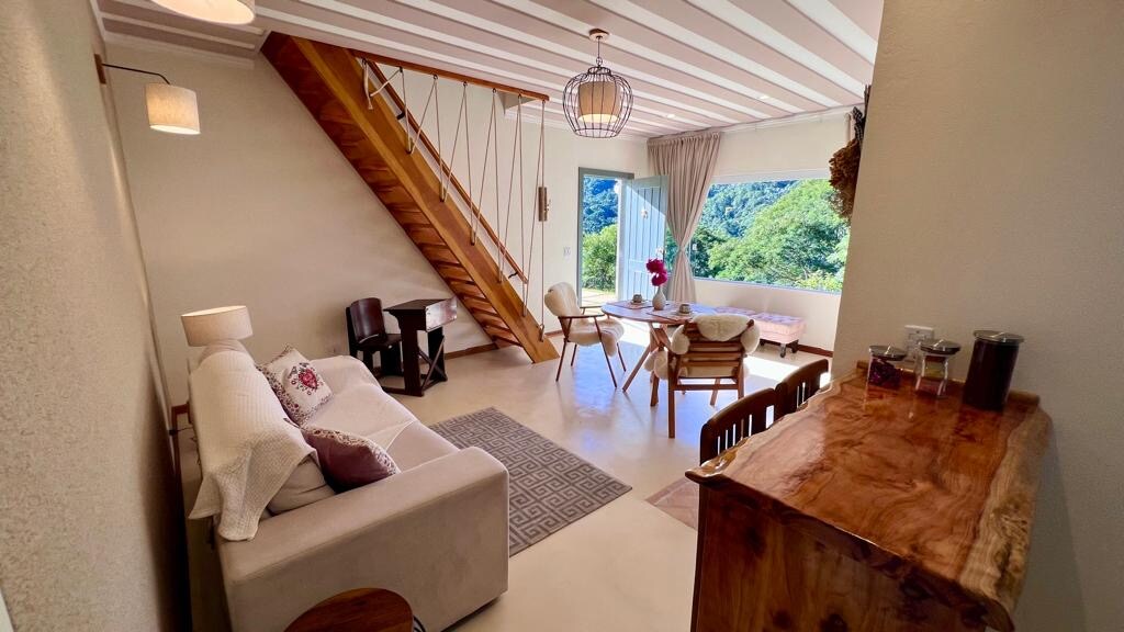 På Ubuntu blir du ønsket velkommen av skogen og stillheten i fjellet. Et loft med glassvegger og panoramautsikt over Paraíba-dalen, 1600 meter over havet, omgitt av natur. Nyt den private fossen, kajakkinnsjøen, det naturlige bassenget og turstiene. En unik opplevelse og en invitasjon til å slappe av i komfort og frihet. Oppdag også vårt andre sted: Refúgio nas Nuvens