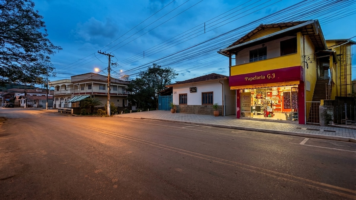 Romslig og godt utstyrt hus i kolonistil i et rolig nabolag i Conselheiro Lafaiete, bare ti minutters kjøretur fra sentrum. Ideell for forretningsreiser, fritidsopphold eller grupper. Har en privat garasje, en lukket hage og, for bedrifter, flere lagerbygninger og lukkede områder tilgjengelig for leie.