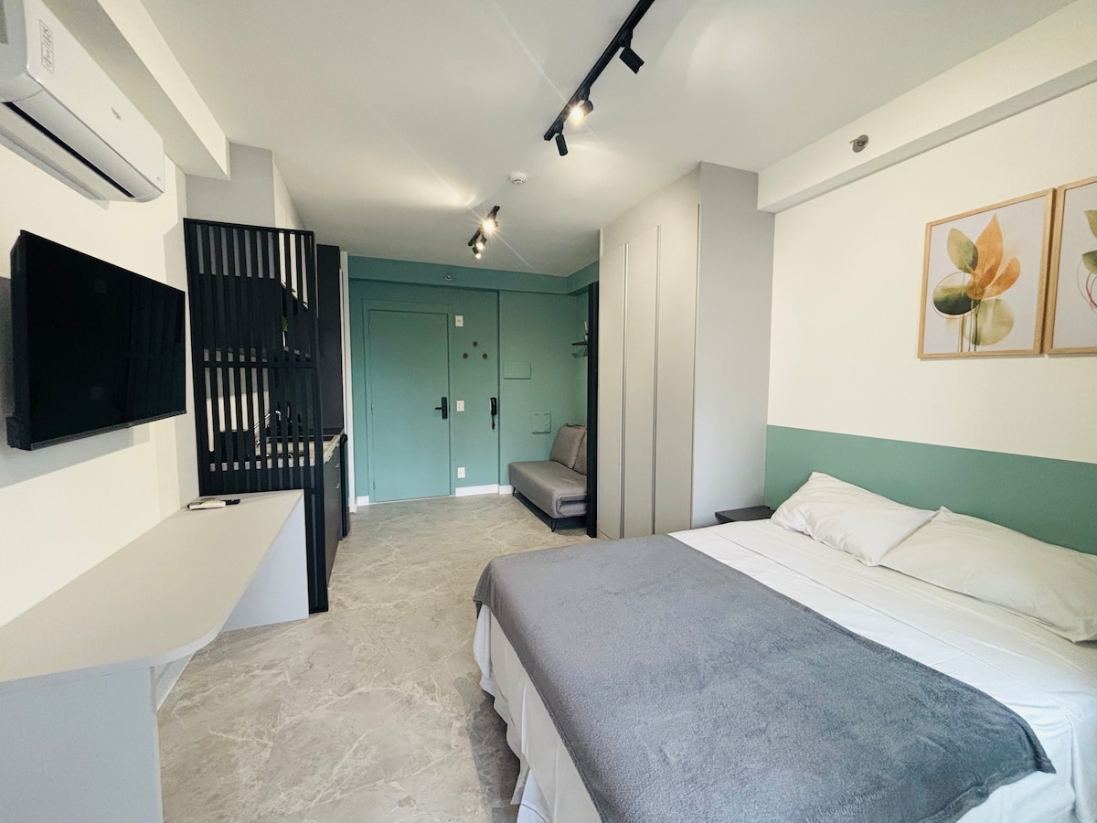 Super ny Studio klar til å bo i!!! Komplett utstyr, innebygde skap på soverommet og kjøkkenet, Alexa, Nespresso, 43 Samsung TV, LG klimaanlegg, luftrenser, elektrisk kokeplate Sugar med 2 plater, Oster blender, hårføner, dusj med oppvarming av leiligheten, rom og korridorer med brede dører. Studioet ligger mindre enn 600 meter fra GM. På gaten foran leiligheten har du tilgang til minimarkedet Pão de Açúcar, Carrefour, Swift, Cafeteria Kopenhagen og andre.