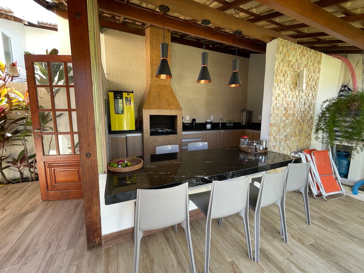 Elegant House 5 suiter med klimaanlegg, svømmebasseng og gourmetområde •grill/IWi Fi • Kyclovia med havutsikt, sportsbane/barnepark • Sykler tilgjengelig for gjestenes bruk • sengetøy /håndklær Dette er det ideelle valget for familier og grupper som søker komfort, Nyt utrolige dager, som ligger bare tre minutters gange fra den beste stranden i Guarajuba, i en inngjerdet leilighet med døgnåpen vakthold. Maks 12 personer