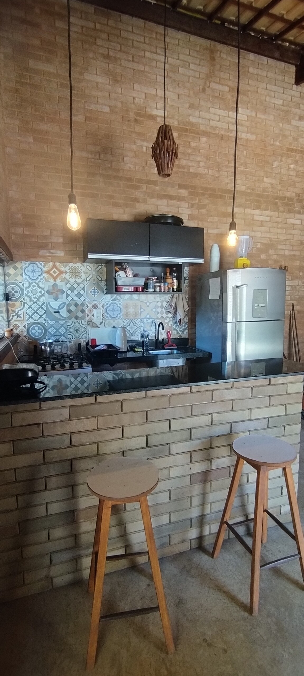 Slapp av i en hytte som ligger mindre enn 150 meter fra Taibinha-stranden. Sov godt mens du lytter til lyden av havet, men i den kjølige luftkondisken og få tilbake energien, fordi det er bølger her hver dag, det er laguner for seiling, turer med firhjuling, grotter og paradisstrender! Dobbeltsengen ligger i hytta, med utsikt over havet 🏝️☀️ Vi har et komplett kjøkken med kjøleskap, komfyr og tilbehør. Det er også en takterrasse (et fellesområde med de andre hyttene) med panoramautsikt over stranden.