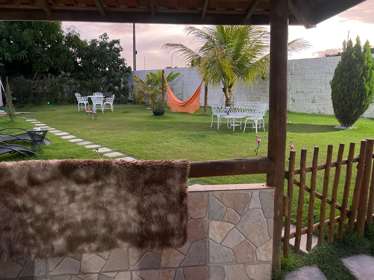 Slapp av med hele familien i dette rolige overnattingsstedet. Beliggende i et Condomínio de Sítios, med vaktstasjon døgnet rundt, fullstendig sikkerhet. Nær byen, en budtjeneste som leverer mat. Svømmebasseng, gourmetområde. Frukttrær. Alt dette på 5 000 m². Stille, ved den vakre solen. 2,5 km unna São Gonçalo sentrum og 2,5 km unna BR 101.