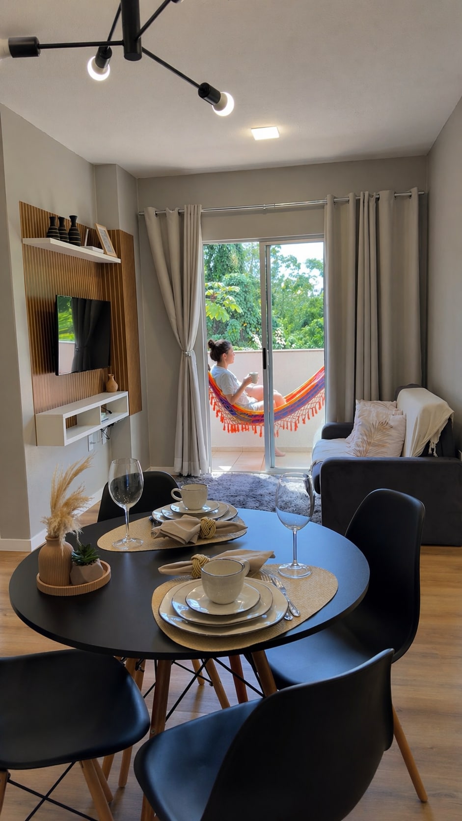 Apartamento confortável, clean e aconchegante, ideal para descanso ou viagens a trabalho. Sala integrada com jantar, cozinha equipada e sacada com churrasqueira. Quarto confortável com roupa de cama de qualidade e banheiro. Possui ar-condicionado em 1 dos quartos, Wi-Fi rápido e vaga de garagem coberta. Localização estratégica em São José, com fácil acesso a Florianópolis. 5 min de mercados e farmácias 5 min BR 101 5 min Continente Shopping 15 min do Hard Rock e Florianópolis