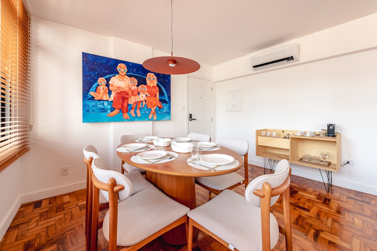 Nyt det beste av São Paulo i denne moderne og koselige leiligheten, bare minutter fra Ibirapuera-parken. Perfekt for fritid eller arbeid. Stedet tilbyr raskt trådløst nettverk, et komplett kjøkken, et komfortabelt soverom og en hyggelig balkong. God beliggenhet, nær restauranter, kjøpesentre og T-bane. Komfort, praktiskhet og stil i et av de mest ettertraktede områdene i byen.