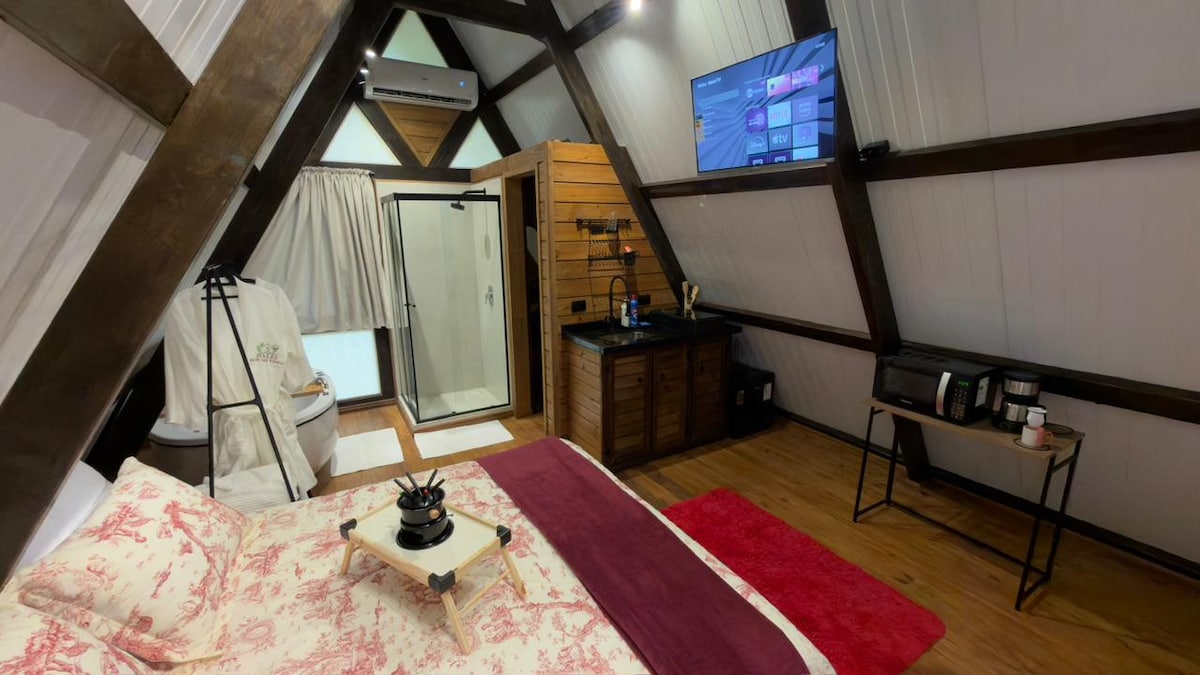 Loft São José er en komplett og luksuriøs hytte med glasslukking (tak og vegger), motoriserte takgardiner, 100'' projektor, internt badekar, intern peis, branngrop, utendørs boblebad, badstue og utendørs salong, alt bygget på et treverk med utsikt over skogen og et stort utendørsområde, for å nyte kontakten med naturen med all komfort, luksus, privatliv og teknologi. Dine beste øyeblikk er her!