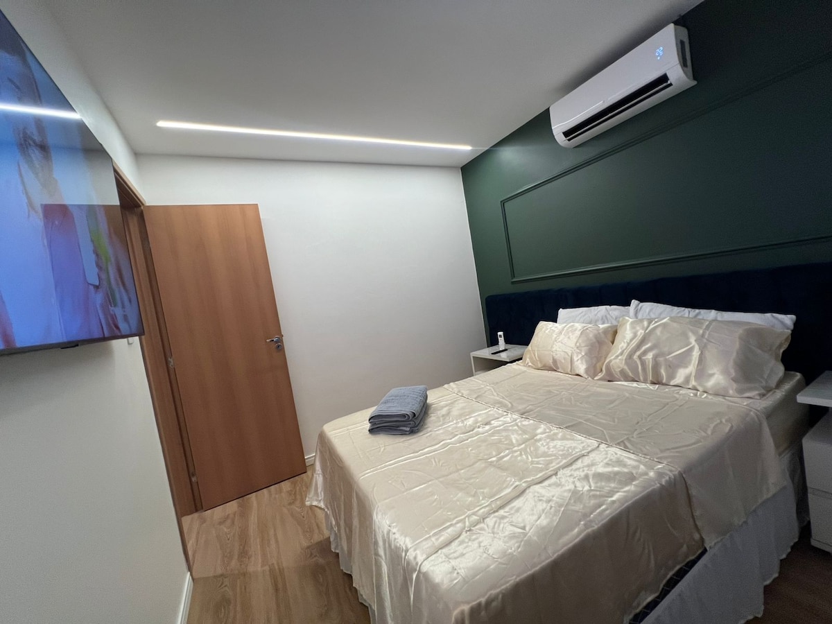 Leilighet, veldig godt utstyrt og supertrygg, ligger i en strategisk posisjon nær sentrum God beliggenhet: sykehus, treningssentre, supermarkeder, bakeri og restauranter. Bygningen ligger 8 minutter fra Vila Sítio São João og 6 minutter fra Parque do Povo. Det er ett soverom med dobbeltseng, madrass og aircondition, alt helt nytt og venter på deg. Bygningen har svømmebasseng og treningsstudio, garasje, heiser, samt dørmann døgnet rundt. MERK: BESØK FORBUDT.