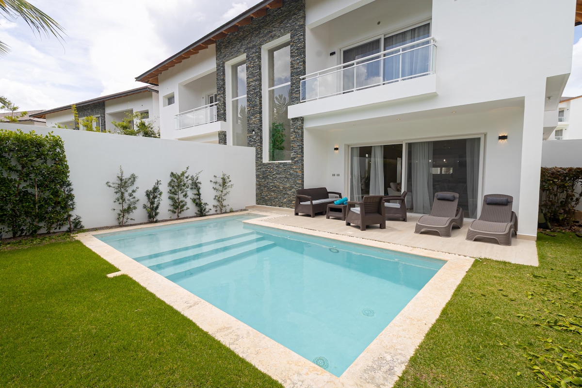 Ny luksusleilighet med privat basseng på terrassen, bare noen få skritt fra en av de viktigste strendene i Bavaro. Et nytt konsept av leiligheter i Punta Cana som vil gi deg komfort, privatliv og sikkerhet for å tilbringe ferien din. Romslige rom, fullt utstyrt kjøkken, designermøbler, trådløst nettverk med høy hastighet og innsjekking på nett med den nyeste teknologien. Strøm er delvis inkludert. Vi dekker $ 10 USD per natt, hvis kostnaden overstiger dette beløpet, vil differansen bli betalt av gjesten.