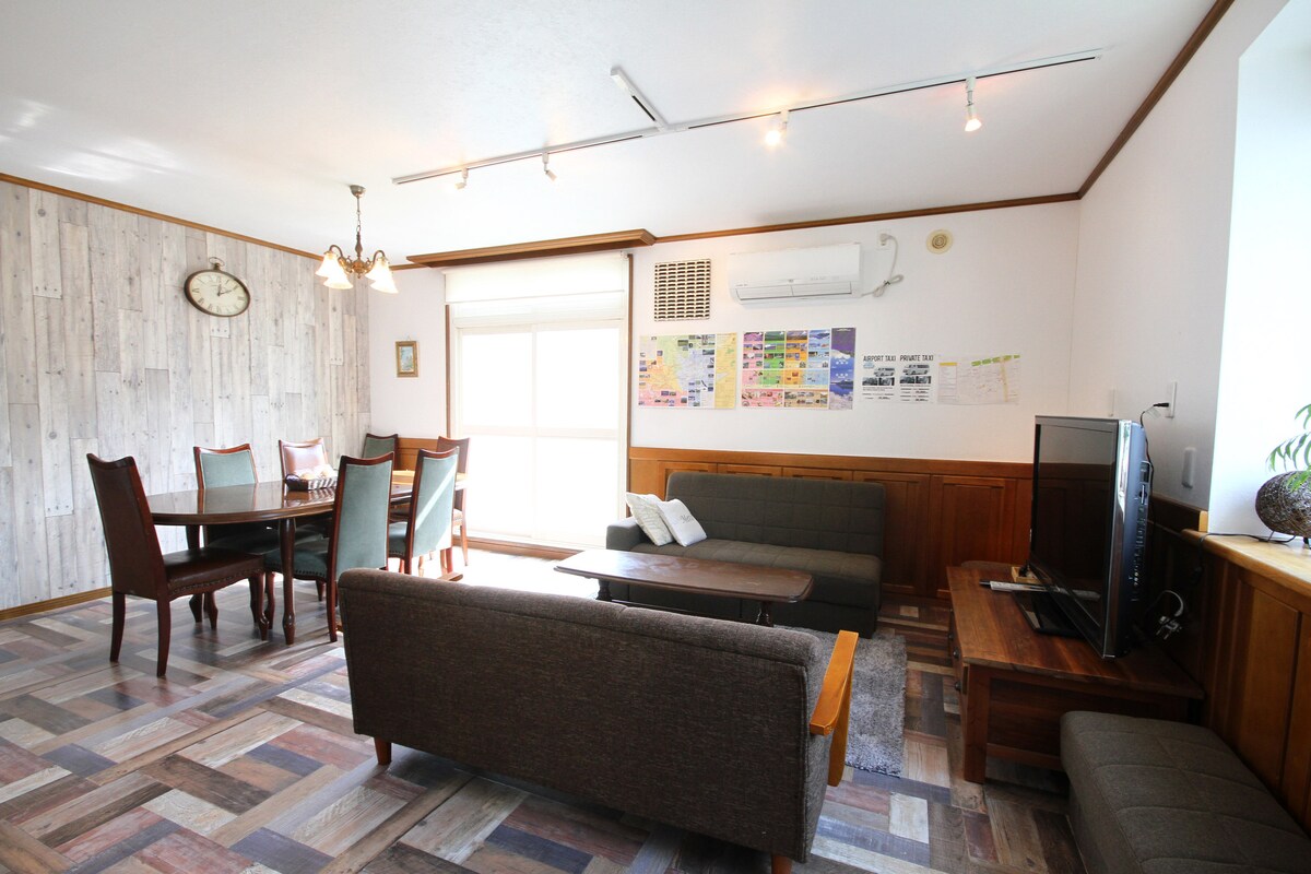 Denne eiendommen er et romslig 2BR herskapshus for åtte personer og mest praktisk plassert i sentrum av Sapporo (seks minutters gange fra T-bane- og flybussens holdeplass, enkel tilgang til sightseeingsteder, noen få skritt unna butikker, restauranter og naturlige hotspring). Dra nytte av et boblebad, raskt og gratis trådløst nettverk i lommen og en parkeringsplass hver time! Det er et rom med plass til opptil åtte personer med en super god beliggenhet i Sapporo sentrum.Det er 6 minutters gange til T-banestasjonen, 6 minutters gange fra flybussen, 7 minutters gange fra Tanuki Koji, ca. 9 minutters gange fra Odori Park, og 15 minutters gange fra Sapporo stasjon, og en utmerket tilgang til Hokkaido turistmål.I første etasje er det en nærbutikk, parkeringsplass for utleie (med fast avgift), restauranter, tavernaer, døgnåpne supermarkeder, varme kilder osv.Trådløst nettverk!
