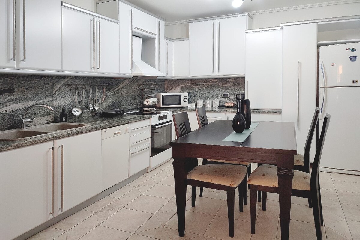 Vi tilbyr en sjarmerende leilighet til leie i Ksamil, bare 150 meter fra stranden. Den romslige enheten har fire soverom, hvert med en dobbeltseng, en enkeltseng, klimaanlegg, kjøleskap, TV, trådløst nettverk og tilgang til en stor balkong. Med fire bad og tre fullt utstyrte kjøkken. Uteområdet inkluderer en sjenerøs hage, perfekt for avslapning, og sikker parkering på stedet. Denne leiligheten er ideell for familier eller grupper som leter etter en minneverdig ferie ved sjøen! Kontakt oss for å bestille oppholdet ditt!