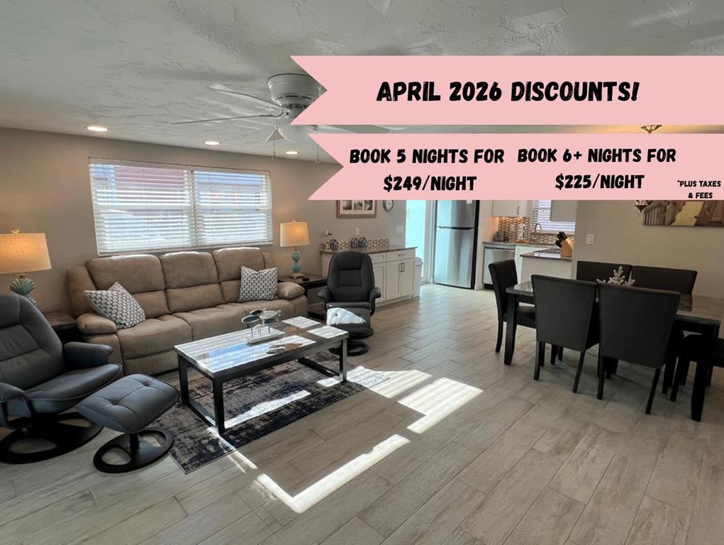Nyt en stilfull opplevelse på denne sentralt beliggende villaen, i hjertet av Laurel Park, i sentrum av Sarasota. To soverom og to bad. Alle moderne bekvemmeligheter, inkludert en ny 75" smart-TV, kjøkken, privat hage og gratis parkering. Villa i første etasje med to soverom og to bad. Soverom 1 har en king size-seng, soverom 2 har to enkeltsenger og stuen har en uttrekkbar sovesofa. Grill tilgjengelig på baksiden for grilling. Oppdatert 2023.