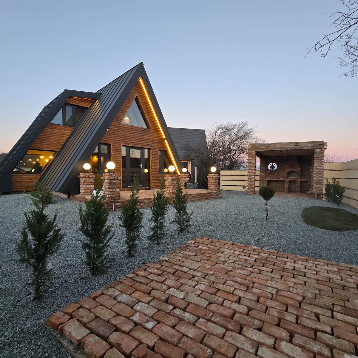 Escape to this charming cottage, perfectly nestled in nature yet just 3 km from Buzău. Offering the best of both worlds—tranquility and convenience—this picturesque retreat is ideal for couples or families seeking a peaceful stay. Perfect for couples, it features an open living area with a kitchen and a cozy loft bedroom, accommodating up to 4 guests. Enjoy relaxation with a hot tub for 35 euros/day/2persons (18:00 - 24:00) while taking in scenic courtyard views from your private terrace.