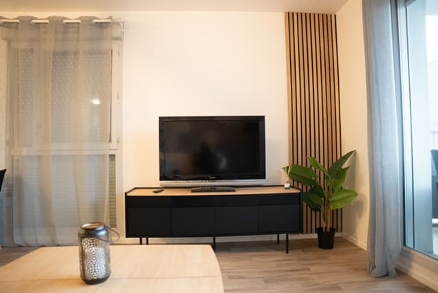 Studioleilighet med møblert balkong oppusset i en moderne og lys stil, ideelt plassert i sentrum og i nærheten av Paris, Stade de France, transport (trikk T5 RER D metro 13 buss 168 og 361) og alle butikker. Koselig soveområde, utstyrt kjøkken, moderne bad, trådløst nettverk og TV. Tilpassbar LED-atmosfære endrer atmosfæren på et blunk – romantisk, avslappet og koselig for deg å leke med. Liten terrasse, et ekte pluss! Nyt kaffen din i solen eller en avslappende kveld. Privat parkering.