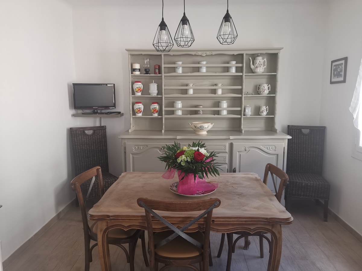 2 minutter fra Propriano, 5 minutter fra strendene, en fin villa på 2 etasjer i et rolig boligområdepartement. Du vil bo i første etasje i en stor T2, et stort soverom med garderobe, et stort bad, en stue med fullt utstyrt kjøkken, spisestue, 2 koselige steder som kan brukes som senger. Du kan slappe av på en stor terrasseilighet, soling, hagemøbler, bord, hagestoler er inkludert. Du vil bli ønsket velkommen av Nina, vertinnen.