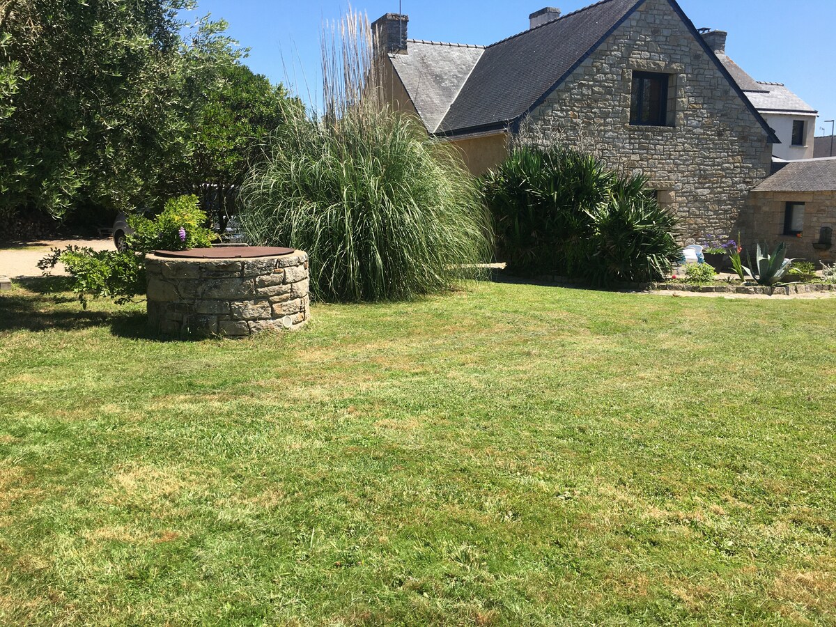 Tradisjonelt bretonsk hus renovert fra topp til bunn, naturlig luftkondisjonert takket være steinveggene som er 60 cm tykke, pluss økologisk kalk/hamp-isolasjon med den vakreste effekten. Superb terrasse vendt sør for 60 m² : hagemøbler, bord 10 seter, utendørs kjøkken (plancha, grill, vask) Anlagt og omsluttet hage Stor gårdsplass med 3 parkeringsplasser, sykkelgarasje (på forespørsel).