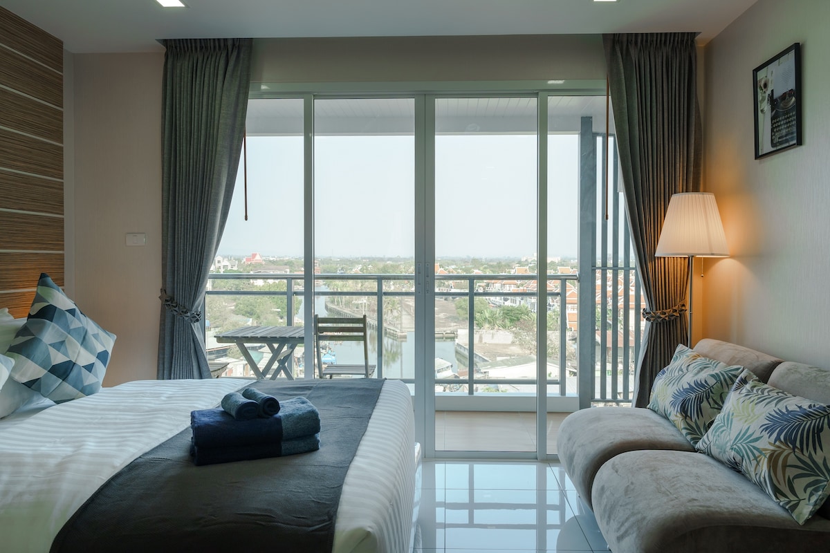 Veranda Residence Pattaya is a spacious accommodation option, perfect for couples or solo travelers. The room features a contemporary design with clean lines, minimalist décor, and modern amenities. The bedroom comes with a comfortable king-size bed and premium linens, guaranteeing a good night’s sleep. The living room has a cozy sofa, a flat-screen TV with satellite channels. Moreover, you can also enjoy the see view from the balcony.