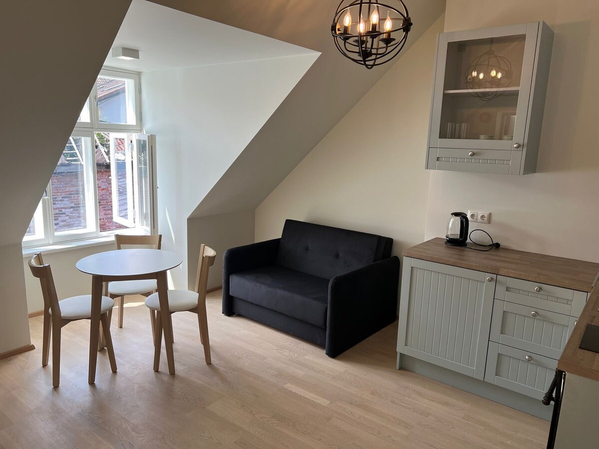 Nydelig 100 kvm takleilighet med sauna og balkong i hjertet av Pärnu. Plassert i den historiske gamlebyen, er beliggenheten så sentral som den kan bli – ideell for deg som ønsker å oppleve byens rytme mens du nyter et komfortabelt opphold. Leiligheten ligger i siste etasje i en av Pärnu's mest historiske bygninger, bygget på 1600-tallet og har en balkong med en magisk utsikt over hustakene i gamlebyen. Stilig renovert, har alle moderne bekvemmeligheter og en indre gårdsplass for parkering.