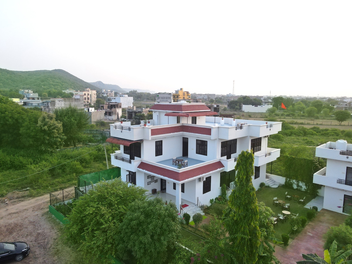 Escape into tranquility at our luxury 5-bedroom villa in Sawai Madhopur, just minutes from Ranthambore National Park. With huge terraces for stargazing, private balconies in every room, and sweeping views of hills and forests, it’s the perfect blend of minimal design and indulgent comfort. Whether you’re planning a big family gathering, a wildlife adventure, or a peaceful retreat, this villa offers everything — from spacious interiors to fresh home-grown fruits from the garden.
