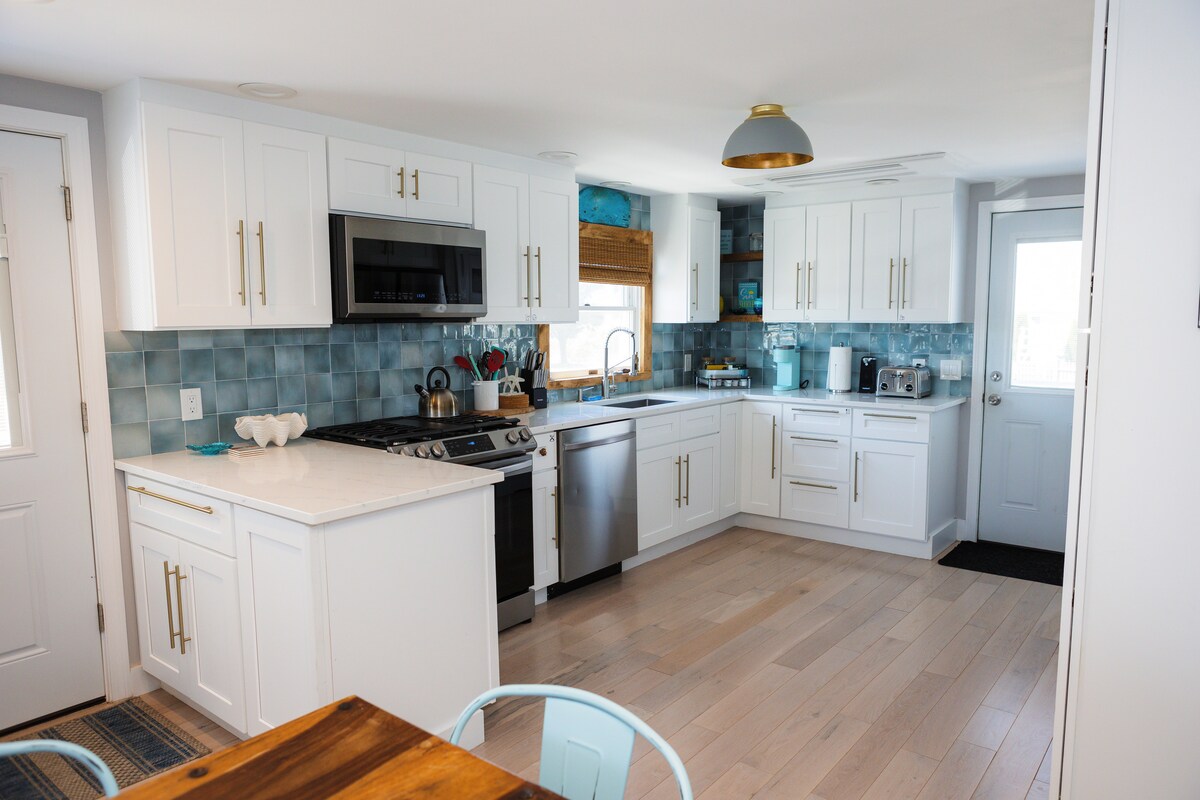 Dette hjemmet ble vist i juni 2021-utgaven av SO RI-magasinet! Dette hjemmet ligger i en rolig blindgate og har en innbydende veranda med havutsikt, en åpen familiestue med peis, et romslig kjøkken og en parklignende bakgård. Privat strand som er forbundet med Scarborough State Beach. Det er tre soverom med kingsize-senger og et separat barnerom. Hovedbadet har boblebad, og det andre badet har en stående regndusj med en stor marmorservant. Huset har håndklær, strandstoler og sykler.