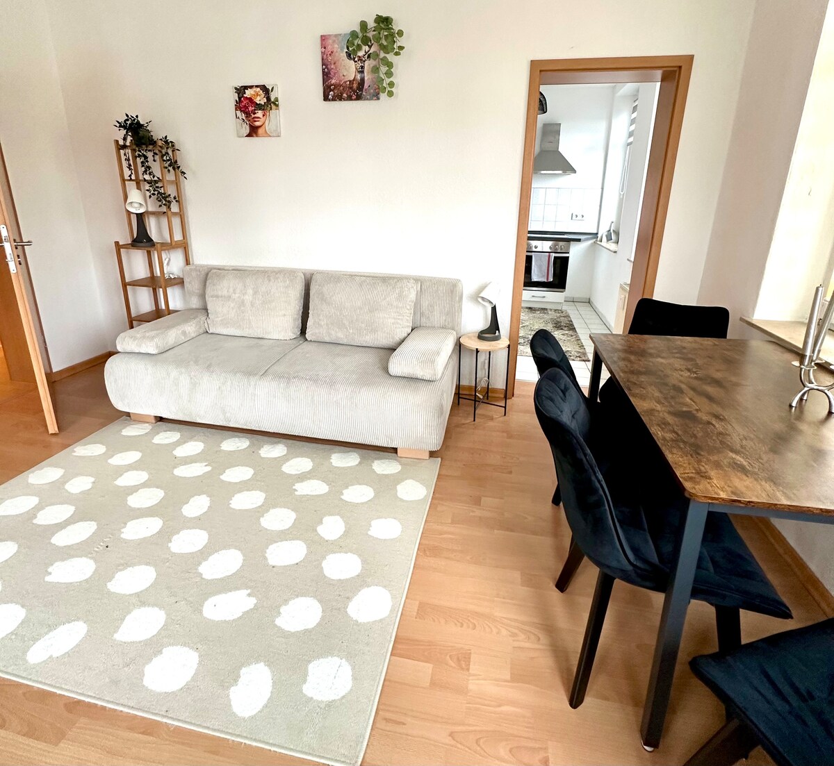 Vår leilighet "Hanoi" er 50 kvm og består av et fullt utstyrt kjøkken og en stue og soveplass. Leiligheten ligger veldig rolig til innergården og har en romslig balkong. • 22 minutter å gå fra sentralstasjonen • 10 minutters gange til markedsplassen • fullt utstyrt kjøkken • romslig balkong • vaskemaskin • Boxspring-seng • Dusj • restauranter og supermarkeder rett ved siden av • Parkeringsplass i parkeringshuset (3 minutter til fots) for 10 € per dag