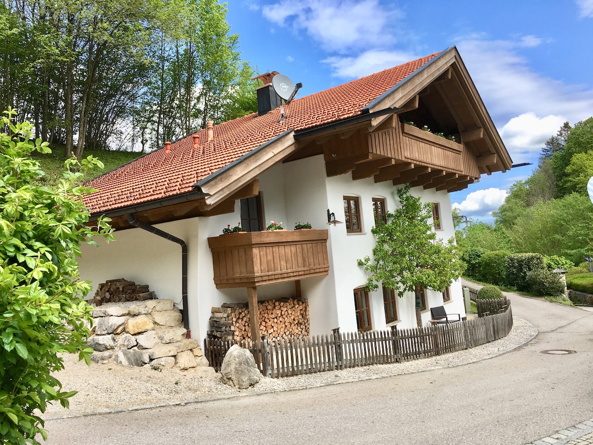 Vår svært lyse, idylliske og rolig beliggende leilighet ligger i første etasje i huset vårt, og har direkte tilgang til din del av terrassen og hagen. Den nye leiligheten er moderne innredet og veldig godt utstyrt. Frasdorf ligger ved foten av Chiemgau-fjellene, innebygd i de myke åsene i Voralpenland. Bare åtte kilometer fra Chiemsee og Simssee. Sentralt mellom München og Salzburg og langt unna stress og mas, og det året rundt.
