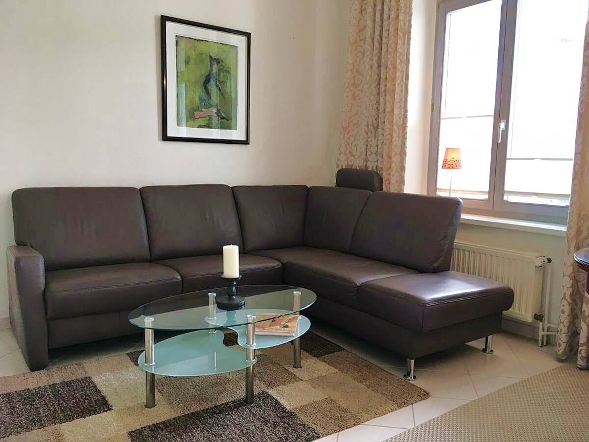 Romantisk tilfluktssted i ekstra klasse Under et historisk teglsteintak ligger dette koselige tilfluktsstedet i kjelleretasjen i Villa Meeresstern, en historisk, fredet bygning fra forrige århundre. De unike, nylig renoverte rommene - bestående av en stor stue-sove-loft, kjøkken, bad og separat garderobe - tilbyr en fascinerende blanding av historisk og moderne, som vil glede designfans.