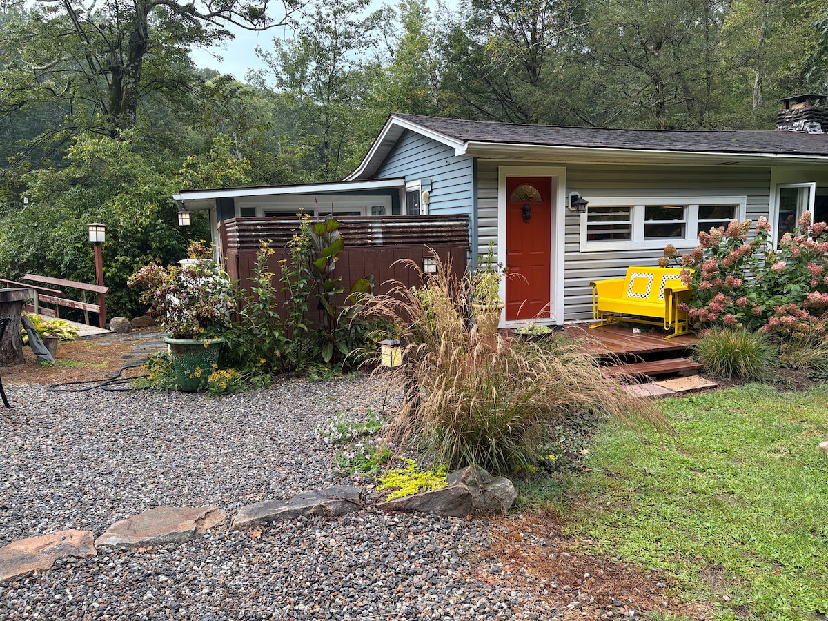 Vakker hytte med to soverom ved vannet mellom dammen og bekken. Hele huset med fullt utstyrt kjøkken, spiseområde, stue med peis, arbeidsområder med høyhastighets internett, bøker, spill og Roku-TV. Hovedsoverommet vender mot dammen. Det andre soverommet ligger ved bekken. Utendørs inkluderer: gassbålplass, piknikbord, gassgrill, spill og sitteplasser ved vannet. Denne spesielle ferien er nær butikker og sesongbaserte aktiviteter i Poconos, men bortgjemt for avslapning og glede.