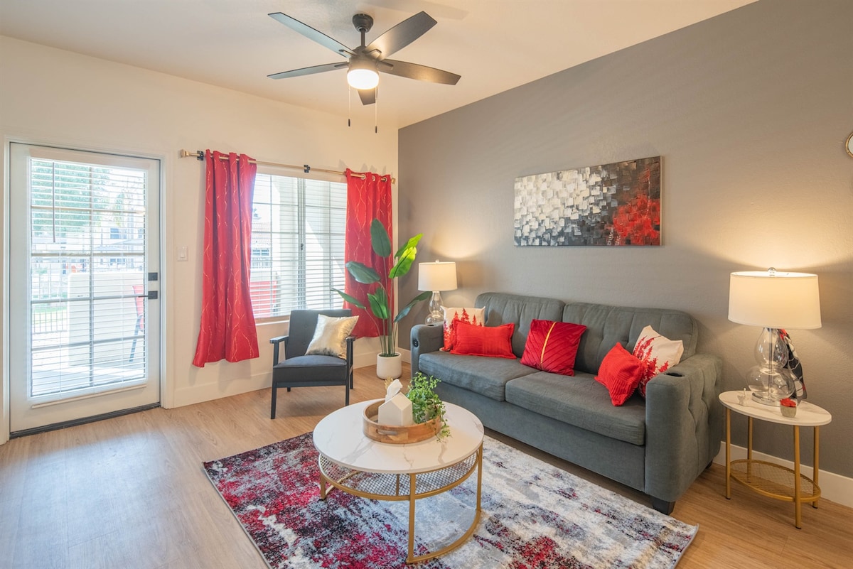 Velkommen til Tempe! Dette hjemmet med to soverom og ett bad har alt du trenger for et avslappende opphold. Fullt utstyrt med dimbar smart belysning og høyttalere i alle rom, med et nylig ombygd kjøkken og bad som kan skryte av en spa-lignende opplevelse i badekaret, vaskerom, høyhastighets internett, 86 tommers 4K-TV (alle store strømmetjenester og over 300 filmer, med 5.1.4 surround) inkludert og en privat bakgård. Dette hjemmet er perfekt for enten en rask tur til byen, filmkveld eller dagferie i bakgården!