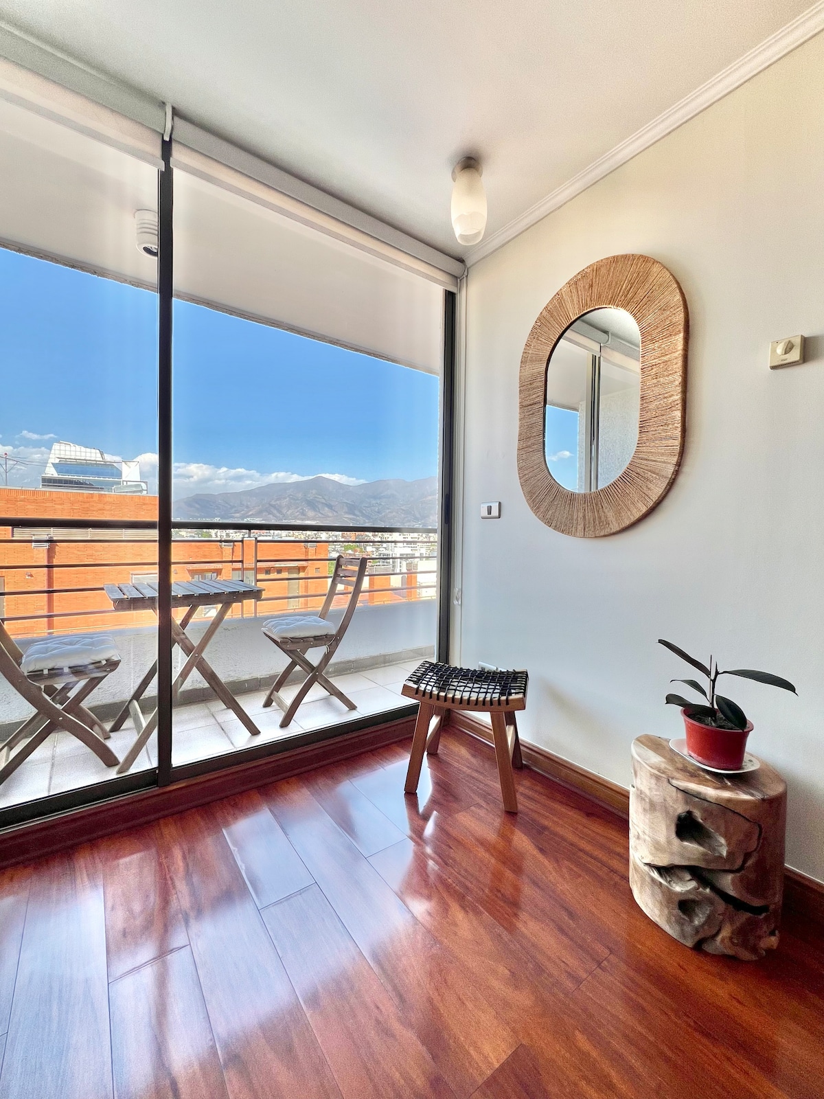 I hjertet av Providence: ett kvartal fra Los Leones metro, minutter fra Costanera Center, Metropolitan Park og Mapocho River. Bygningens takterrasse har en spektakulær utsikt mot Cerro San Cristóbal, panoramabassenget og minigym for gjestene. I nabolaget finner du et godt tilbud av restauranter, teatre, puber, kaféer, apotek, bokhandlere og kunst- og handelsrom. Gjennomgå guiden vår med miljøanbefalinger.