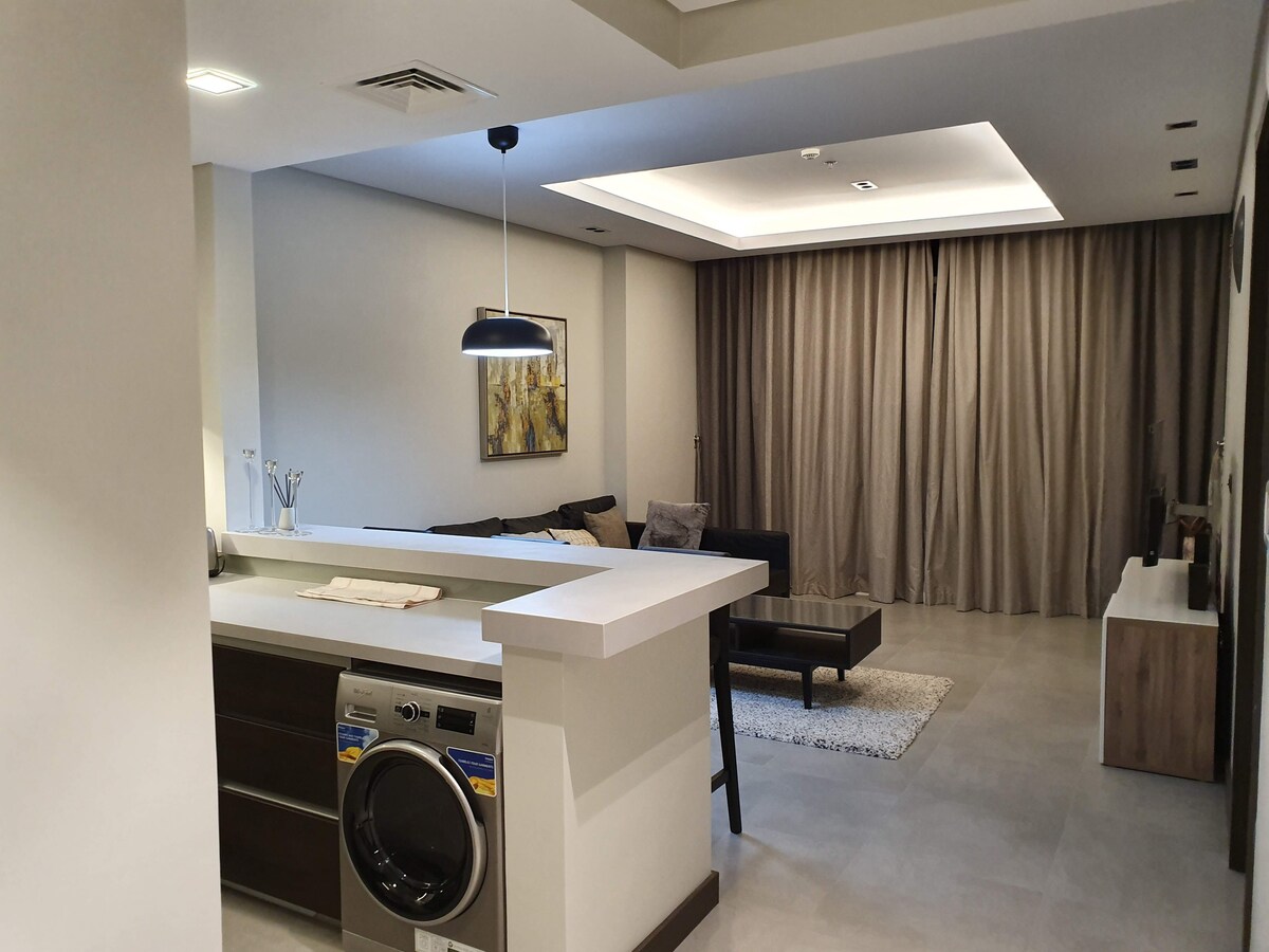 Slapp av i denne fullt møblerte leiligheten med ett soverom i hjertet av Bahrain Bay, med vakker havutsikt og balkong med utsikt over Four Seasons. 🏡 Stedet • Ett soverom med en komfortabel kingsize-seng. • Stue med sofa og ekstra • plass til opptil tre voksne • Privat balkong med fantastisk havutsikt. 📍 Beliggenhet. • Førsteklasses beliggenhet i Bahrain Bay. • Gangavstand eller kort kjøretur til Four Seasons Hotel, restauranter, kaféer og store attraksjoner.