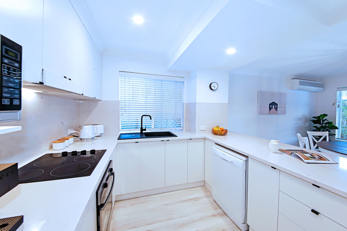 Romantisk leilighet ved stranden med panoramautsikt over Coolums bukter. Nyt soloppgangen over havet, ta et bad mens bølgene ruller inn, eller nyt kaffe på den private balkongen over bølgen. Dette moderne, åpne tilfluktsstedet er perfekt for noen rolige dager ved havet, og det blander luksus og komfort i fredelige kystomgivelser. Vandre på den naturskjønne strandpromenaden, utforsk skjulte strender og spasér til lokale kaféer. Slapp av på sanden ved First og Second Bay, bare noen skritt fra døren din.