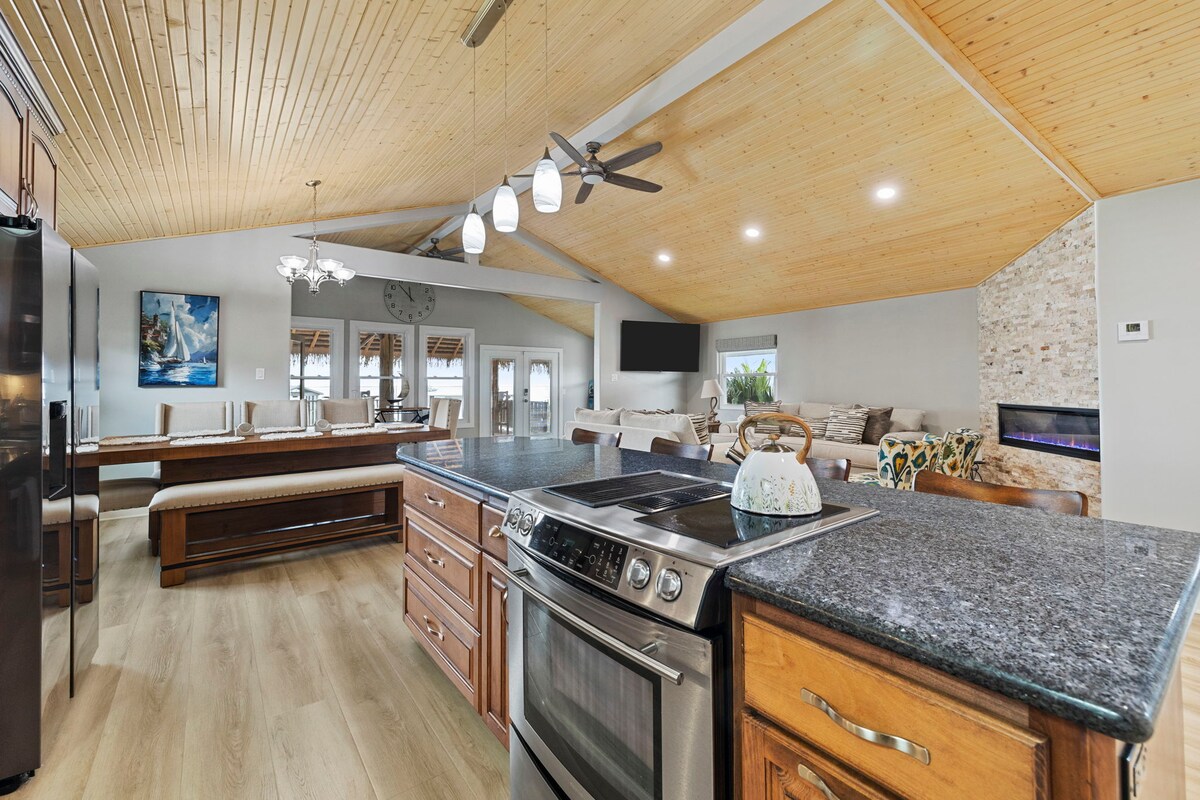 Vår Kemah Bay Retreat ligger bare 2–3 minutters gange fra Kemah Boardwalk og Lighthouse District! Du er bare noen skritt unna familieunderholdning, butikker, restauranter og barer. Nyt utsikten og lyden av bukten fra båter og fugler som passerer forbi ved huset ved vannkanten. Kom deg ut på vannet med de medfølgende kajakkene og utforsk kysten. Fisk fra den private 216 fots bryggen vår. Det er en heis, elbil-lader, fotballbord, bordtennis, basketball, arkade, utendørs sjakk/dam og cornhole-spill.