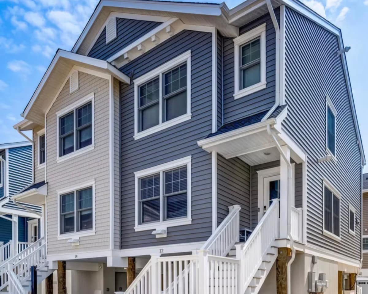 🏝️ Bestille trygt. Breezy Beach Stays er stolt av å ha over 1300 femstjerners anmeldelser og en vertsvurdering på 4,98, noe som plasserer oss i topp 1 % av vertene på Airbnb. 🏝️ Velkommen til feriestedet ditt i Seaside Heights! ☞ Luksuriøs tre-etasjes endeenhet i rekkehus. ☞ Rett overfor stranden ☞ Privat balkong + uteområder ☞ Premium trådløst nettverk ☞ Basseng og boblebad i nærområdet. ☞ Vaskemaskin og tørketrommel i boligen ☞ Toalett og dusj på stranden ☞ Stor privat garasje med plass til 2–3 biler ☞ 6 strandmerker + 2 seniormerker inkludert (i sesongen)