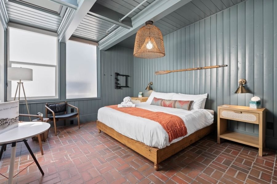 Rom med queensize-seng i øverste etasje på The Boylston Hotel
