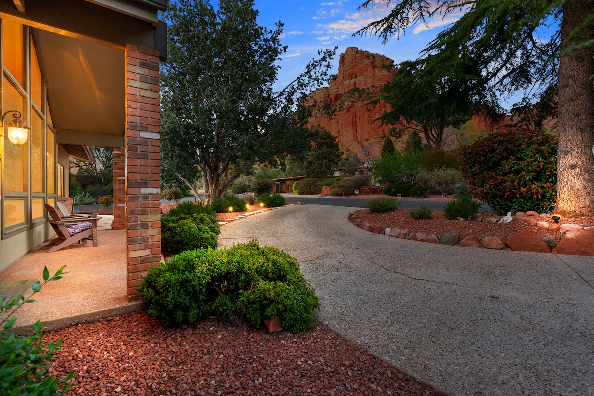 Flott utsikt i Sedona med vakker bakgård og basseng