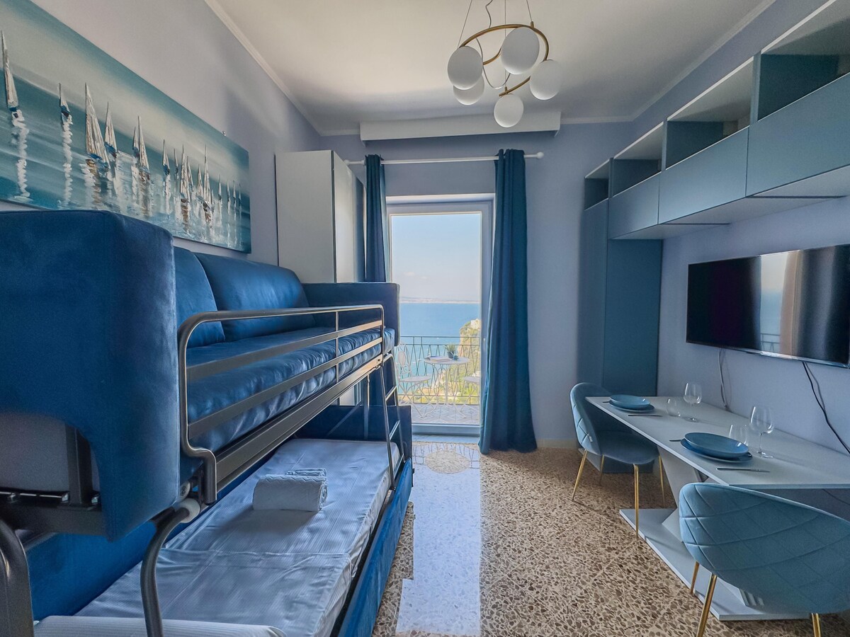HAVUTSIKTEN er et studio med åpen plass, nedsenket i kystlandsbyen Piano di Sorrento. Ideell for romantiske ferier eller de som ønsker å unnslippe kaoset i byen og tilbringe en avslappende tid. Sea View er utstyrt med all komfort, med en terrasse med utsikt over havet. Du kan slappe av med et glass vin i boblebadet med kromoterapi. Eiendommen er 10 minutters gange fra sentrum. Du kan nå øya Capri med hydrofoilen som starter 100 meter fra strukturen.