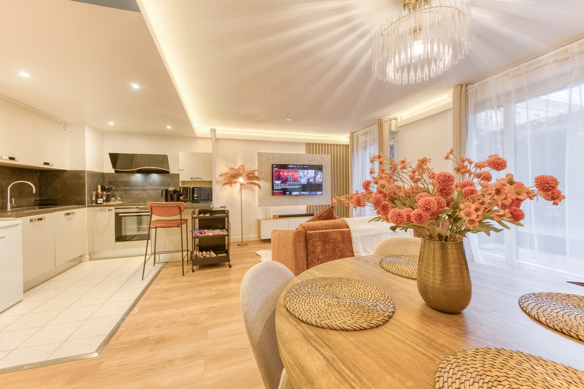 Hyggelig overnatting på 55m2, fullstendig renovert og innredet med omhu. Lys og fullt møblert, den inkluderer også alle nødvendige verktøy for å føle seg hjemme og nyte et svært behagelig opphold. Alt du trenger å gjøre er å sette ned koffertene ditt hjem! Ideelt plassert 9-10 minutter til fots fra Raincy-Villemomble stasjon, vil RER E gi deg mulighet til å nå sentrum av Paris: – Magenta (Gare du Nord) på 20 minutter – Saint-Lazare på 25 min Perfekt for besøk/utflukter i Paris 🎇
