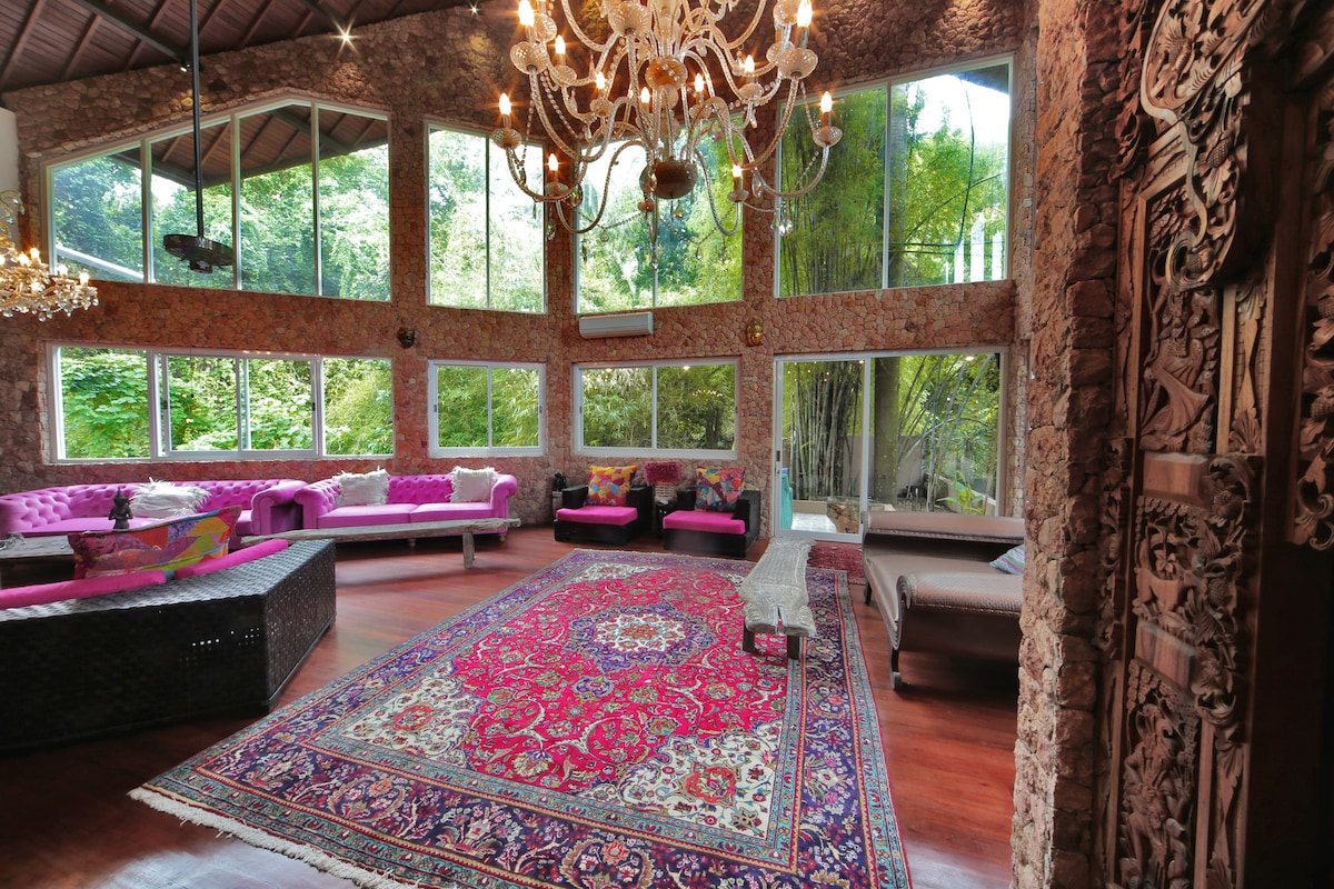 Katana Villa er en unik, kunstnerisk villa med en rolig, helbredende energi. Vi har tre separate bungalower med soverom, klimaanlegg, fullt utstyrt kjøkken, åpen planløsning og treningsrom. Ligger rundt et spennende basseng i to nivåer med VANNSKLI og GROTTE! Den perfekte villaen for en familie eller vennegjeng, spesielt hvis dere liker dyr. ;-) Den nyeste fasiliteten vår er en PICKLEBALL-BANE: Deles med den andre utleieenheten vår på eiendommen. MERK: Vi er pålagt å kreve inn en lokal hotellskatt på 10 % (PB1), på samme måte som hoteller og feriesteder. Takk.