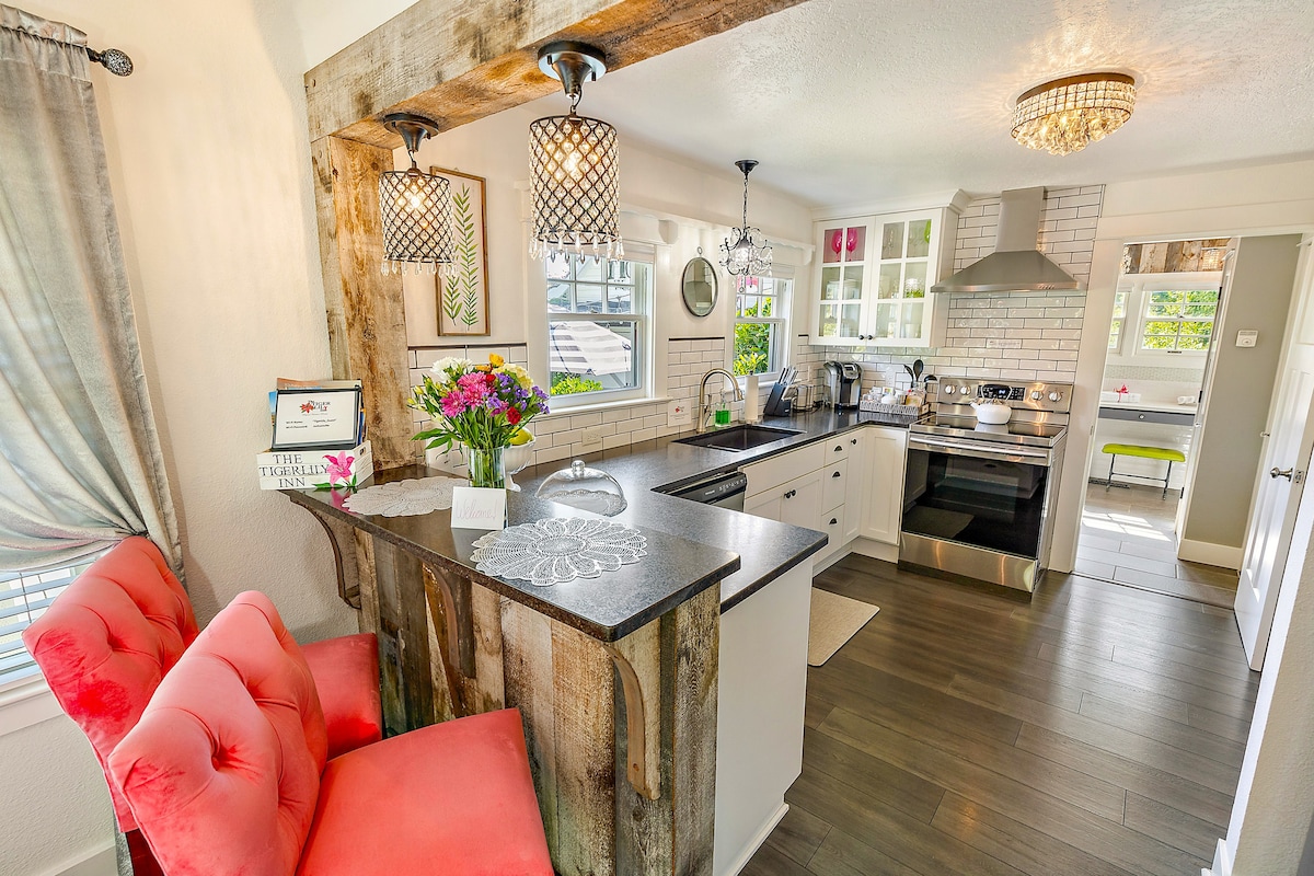 Nylig oppdatert suite (med kjøkken) i et historisk hjem. Egen inngang, innredet med moderne, smakfull stil. Har smart-TV og smartlås som alle er koblet til internett. Ingen kjæledyr, takk. Veldig praktisk for I-5, flott for både reisende og mellomlange opphold. Ideelt for sykepleiere på reise. Kontakt meg for tilbud! Grants Pass og området rundt er vakkert, beliggende ved foten av fjellet og bare noen kvartaler unna sentrum. Boblebad og vaskerom er til gjestenes bruk.