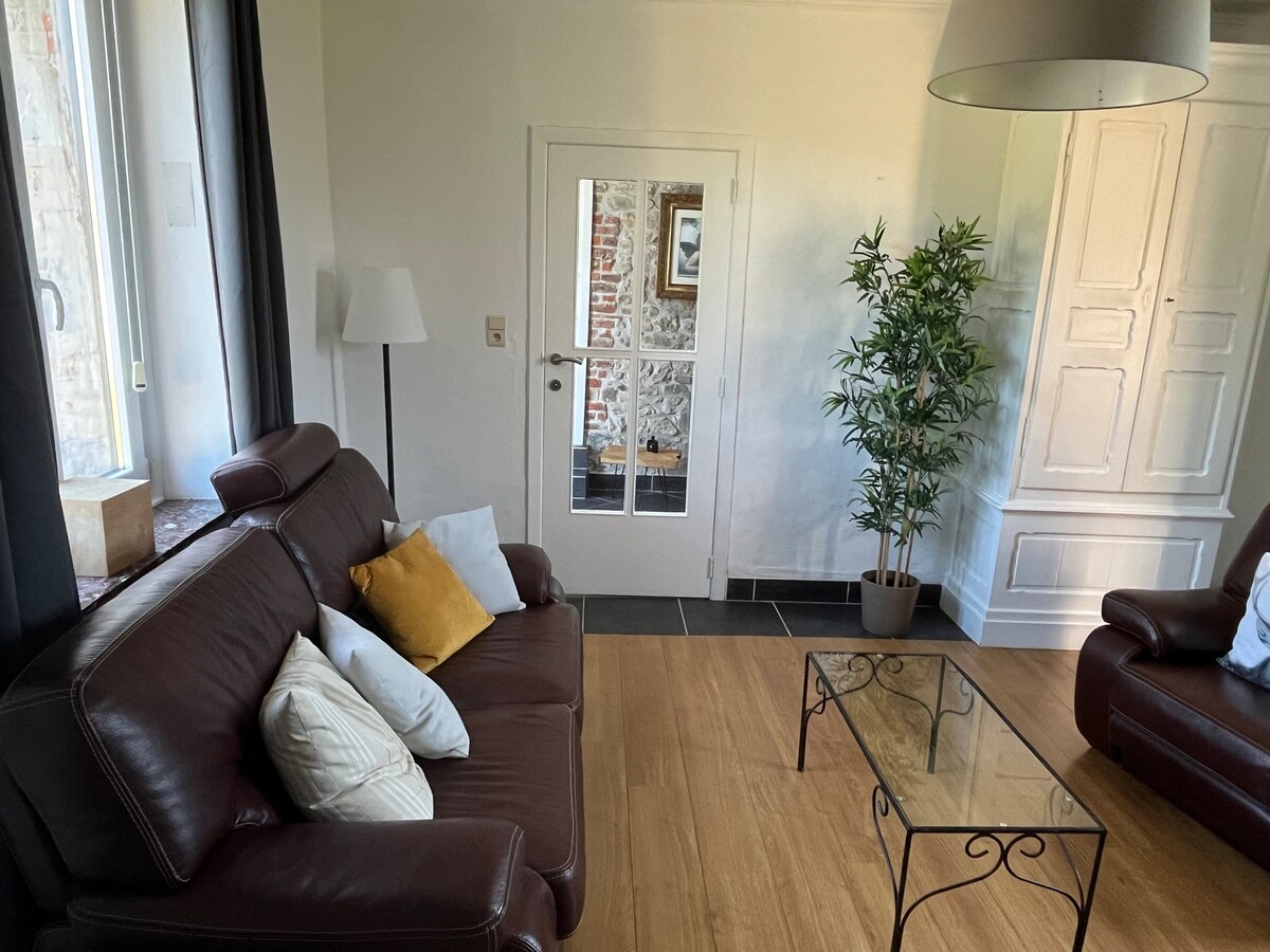 I sentrum, i en smakfullt renovert bygning, tilbyr vi et fullt utstyrt, elegant rom. Dorée ligger på Grand Place, i nærheten av Château og det historiske sentrum, og tilbyr deg en avslappende atmosfære. Utstyrt med sengetøy av høy kvalitet, kan du hvile der i to, eller til og med tre, etter en spasertur i den vakre regionen vår. En garasje er tilgjengelig for globetrottere på to hjul.