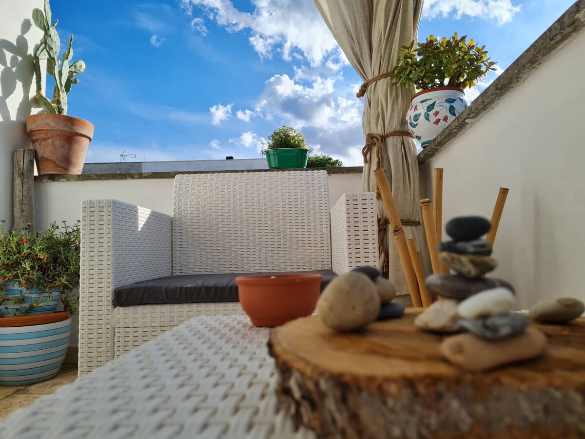 Ny to-roms leilighet,fullt møblert. For familier med små barn sørger vi for en høy stol og barneseng og/eller barneseng. Leiligheten har egen inngang og egen hage. Et bakeri og et bryggeri ligger bare noen få meter unna. Hvor vi er Huset ligger 10 minutters gang til Otranto slott og dets historiske sentrum, 40 km til Lecce og 72 km til Brindisi flyplass. Strandene og de pittoreske landsbyene i Salento ligger få minutter unna med bil.