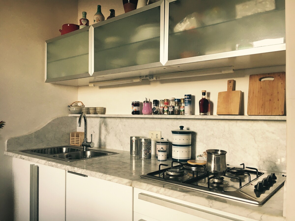 Jeg har nylig forvandlet dette stedet i Gaeta Medievale til en koselig, moderne leilighet med all nødvendig komfort. Elegant design, håndlagde fliser designet av meg, de store hvite steinene på gulvet og den fantastiske utsikten over bukten gir dette stedet en sterk middelhavsfølelse. Hvert rom har eget bad, og eiendommen er like egnet for en familie eller for par/venner som reiser sammen.
